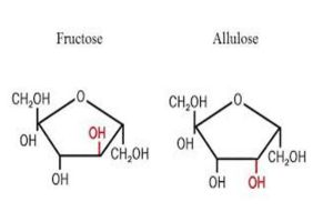 Allulose structureAllulose is a rare sugar with a unique twist in nature. It belongs to a group of simple sugars called monosaccharides, which include fructose and glucose. However, allulose only contains 1/10 of the calories but maintains a similar taste and texture to these sugars. Allulose has the same molecular formula as fructose and glucose, but the placement of chemical groups is slightly different. The rearrangement of chemical groups is capable of changing their physical and chemical properties. It is found in small amounts in fruits such as figs, raisins, and jackfruit. Unlike regular sugar, allulose is absorbed by the body but not metabolized. With 90% fewer calories than sugar, it’s ideal for weight management. Since it has little to no effect on blood sugar levels, it is also a healthy sugar alternative for those who have blood sugar fluctuation issues.