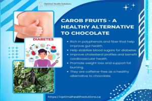 For diabetes, carob helps prevent spikes in blood sugar as it contains far less sugarand calories, and it is also rich in fiber, such as pectin. Carob can help stabilize blood sugar by keeping blood glucose levels within normal ranges due to its low glycemic index.